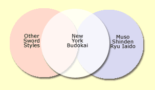Shu, as shown here its contemporary form on the left, literally means to “obey.” In a martial arts context, shu is often translated as either “obeying your teacher” or “imitation [of your teacher].” My teacher, Otani Yoshiteru, actually prefers its earlier incarnation on the right (below), and refers to Shu as “tradition.” In Shu, one learns all the traditions of a given style of an art form. For example, in Muso Shinden Ryu iaido, Shu suggests progressing to a good technical understanding of all 48 of the solo kata (both the movement and the bunkai) and any other relevant techniques, along with understanding aspects of the history of the style, and some idea of its general characteristics, strengths and weaknesses relative to sword arts in general. “Tradition” does not simply include the kuden (curriculum) of MSR; Shu also includes learning the history, traditions and customs of the particular dojo. At New York Budokai, we have unique perspectives on how rank is conferred and considered. We also have a number of sword techniques that are only practiced in our dojo. If we were to draw a diagram of the Shu of NYB as a set of circles, the circle that is NYB would cover a large part of the circle that is MSR (though not all of it, as some techniques are no longer practiced). It would also have a large part on its own, as well as some small part to indicate other techniques that are not unique to NYB, but are also taught in the dojo.