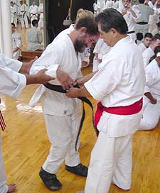 Kevin being awarded his second-degree black belt by Kaicho Tadashi Nakamura.