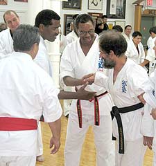 At the conclusion of testing, participants were awarded their belts. Kaicho Nakamura asked me to introduce Kevin and give some background on him and his studies. I recounted his history, his challenges, his work ethic as well as his keen sense of humor, his insightful knowledge. I also noted that the one time he had been attacked, he had nearly beaten up his assailant before other intervened.
