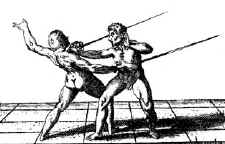“When two unskillful men (being valiant) shall fight with long single rapiers, there is less danger in that kind of fight, by reason of their distance in convenient length, weight, and unwieldiness, than is with short rapiers, whereby it comes to pass, that what hurt shall happen to be done, if any with the edge or point of their rapiers is done in a moment, and presently will grapple and wrestle together, wherein most commonly the strongest or best wrestler overcomes, and the like fight falls out between them, at the long rapier and poniard, but much more deadly, because instead of close and wresting, they fall most commonly to stabbing with their poniards.”