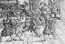 Some would still give us the impression today that personal combat in the Renaissance consisted only of cavaliers and courtiers formally dueling each other and apparently no gentleman or courtier in the period ever fought under any other condition or for any other reason other than affairs of honor. Of course, it must be thoroughly understood that it was the Renaissance aristocracy who were primarily recording accounts of duels and frays and who naturally wrote almost exclusively about combats among their own social class. Naturally, proper duels (illegal or not) were far more interesting to them than everyday fights (by gentry or commoner) which garnered neither reputation nor honor. But the actual evidence from the period suggests a very different character than a conception of simple “honorable” swordplay.