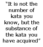When you perform kata, the most important thing is your mental attitude. Kata is not a play. You have to perform it seriously. It is easy to remember the order of kata, but the essence is not only to have performed the kata, but how you acted. For that reason, you have to practice the basics, such as the standing position, how to defend, how to thrust, and how to kick every day.