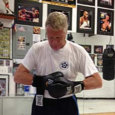 Then comes the glove. Pictured are boxing gloves with a Velcro loop of cloth that wraps around the wrist, securing the glove. Another type of glove has laces. Either is good but neither affects the message of this article – getting a proper, secure fit. If you do not start with a hand wrap, try to limit the maximum power of your punch. The glove cushions the impact but can't secure the hand and distribute impact as the wrap does.