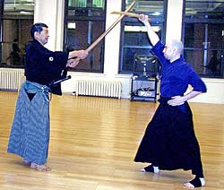 | Hataya Mitsuo, 9th dan, and a seminar participant, |